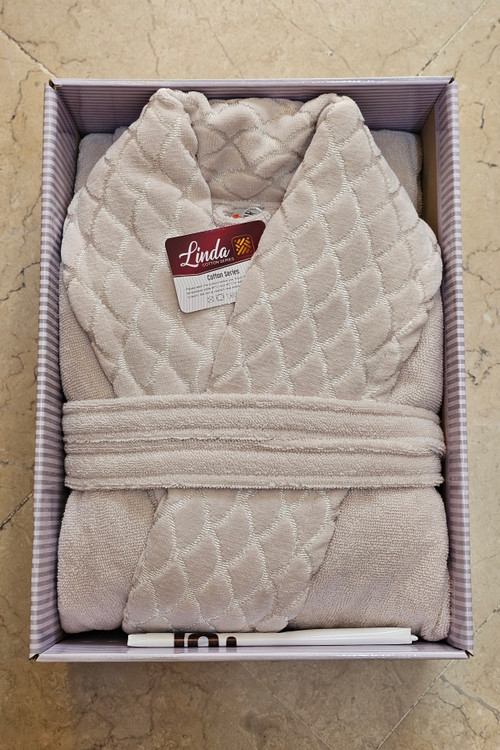 پالتو حولهای دورونخ ترک لیندا یک انتخاب بینقص برای افرادی است که به کیفیت، زیبایی و راحتی اهمیت میدهند. این محصول با نخ رینگ ترک اصل بافته شده و همین موضوع باعث شده که حوله نرمی فوقالعاده و قدرت جذب آب بینظیر دوطرفه داشته باشد. یعنی هر دو طرف پالتو به یک اندازه آب را جذب میکنند و شما بعد از حمام یا استخر بهسرعت خشک میشوید.